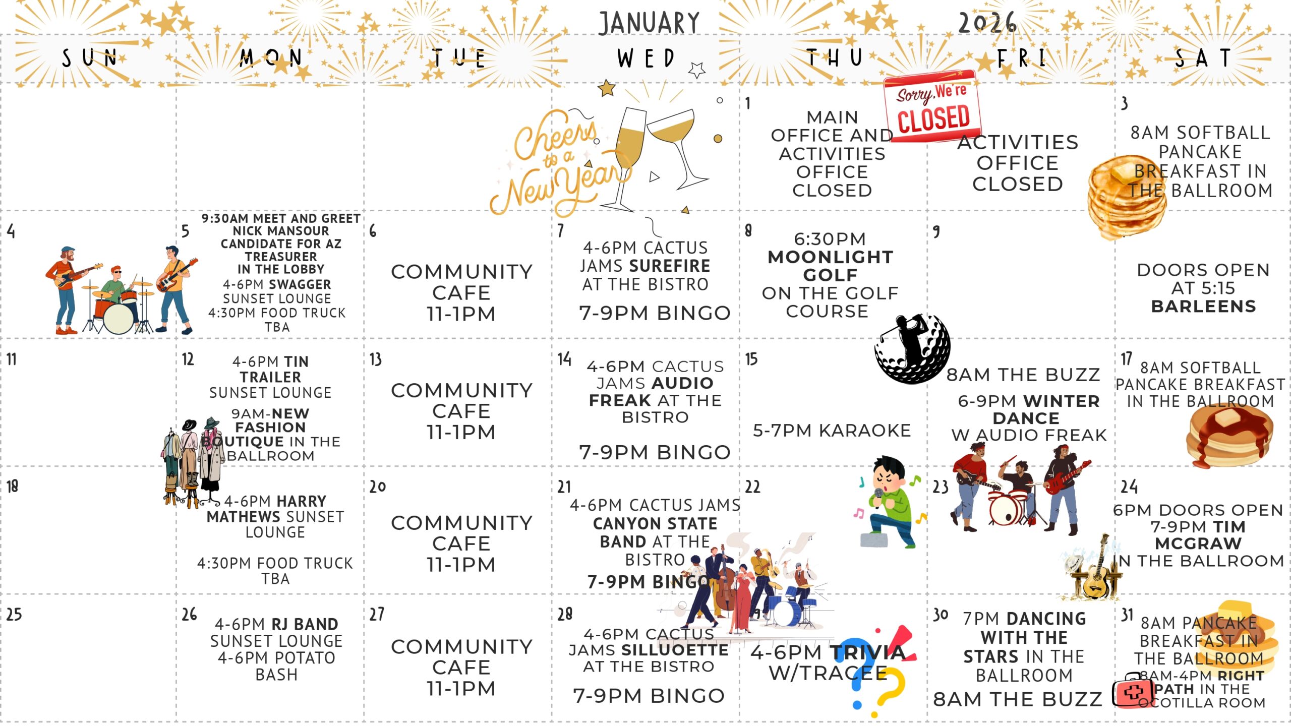 Enjoy resort living at its finest within an active community at Gold Canyon RV and Golf Resort! From sports activities, community events to leisure time in front of the pool, you will be “living the life” you’ve always dreamed of. And, be sure to take part in our monthly activities, there’s sure to be something fun for everyone!