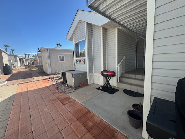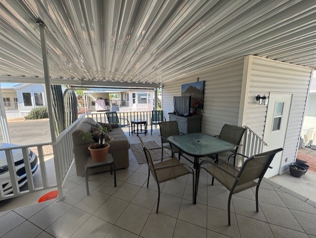 Enjoy restful nights in a queen-size bed with built-in storage, and appreciate thoughtful touches like new exterior porch lights and a water softener. The casita includes a washer & dryer, perfect for guests or extra space. Relax on the ceramic-tiled deck with sunscreens—designed for easy upkeep and year-round enjoyment.