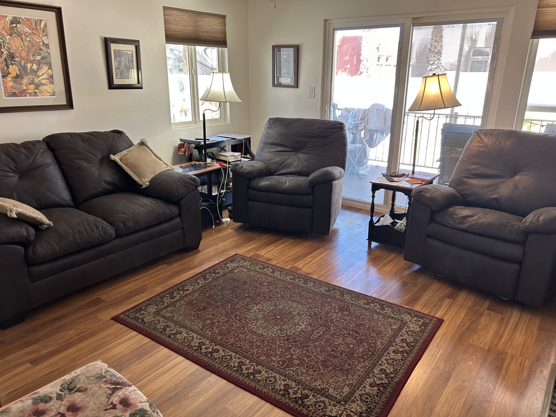 Flooring upgrade to laminate and vinyl in 2nd bathroom. Two full bathrooms. Stackable washer and dryer. All new windows and roof 2015. Four smart tvs. Living room 70 inch tv. Living room has infrared fireplace. Sliding door to deck that has within glass blinds. New double stainless steel sink installed along with new faucets and reverse osmosis water system. Feeds icemaker in fridge. Regular water softener installed. Separate hot water tank installed for 2nd bath and w&d. Drapes in kitchen with honeycomb pull down blinds also installed. All windows have honeycomb pull down blinds. Deluxe lot #7 on wash. Back yard privacy. Beautiful light display along wash at night. Deck can be enclosed with pull down blinds to offer space for blow up bed if required.