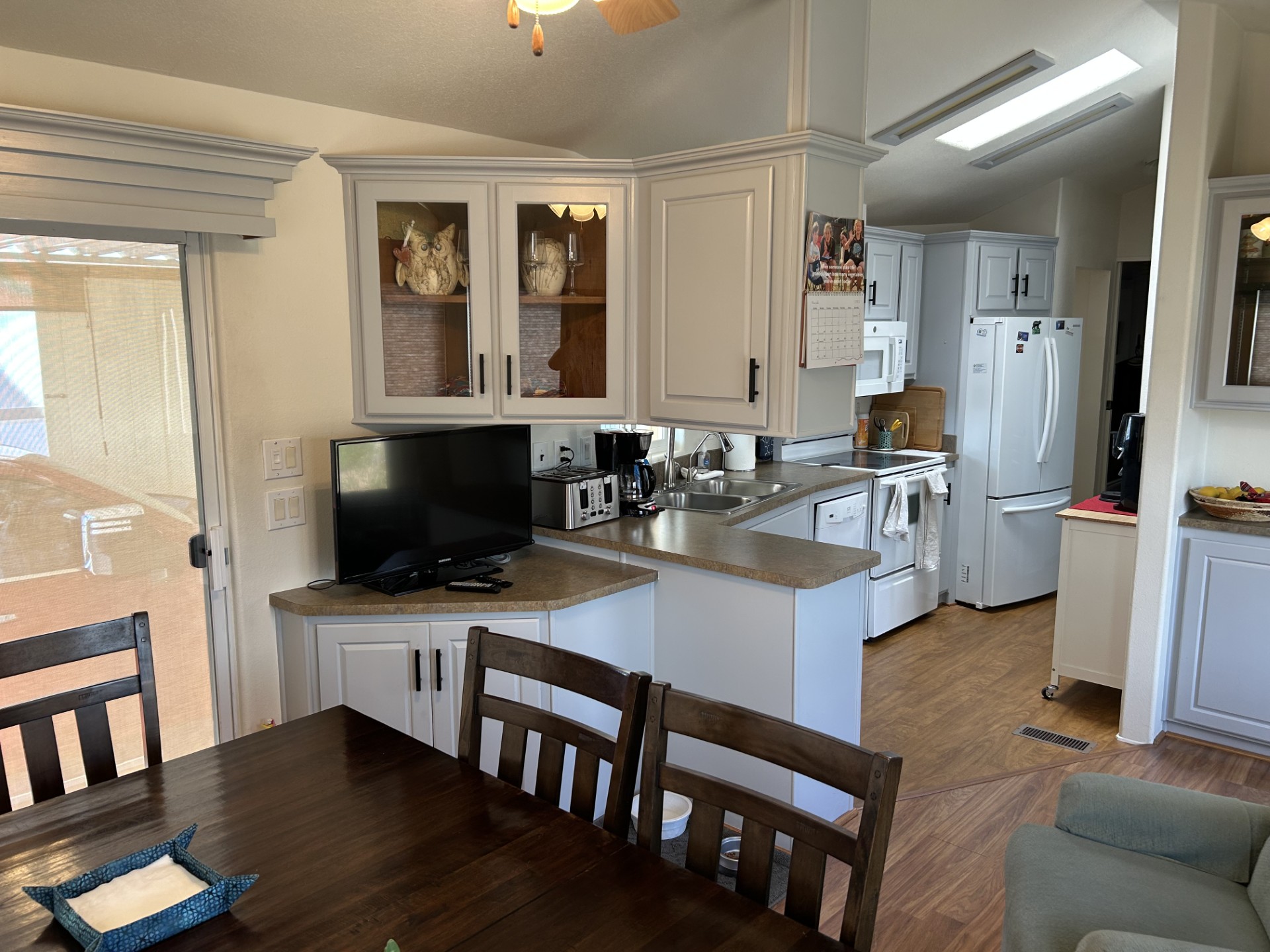 2008 Cavco AZ Room added in 2014. Nicely appointed unit. Cupboards and woodwork repainted 2023. This includes main bathroom and bedroom wood. New appliances, microwave 2025, Refrigerator 2015, dishwasher 2022.