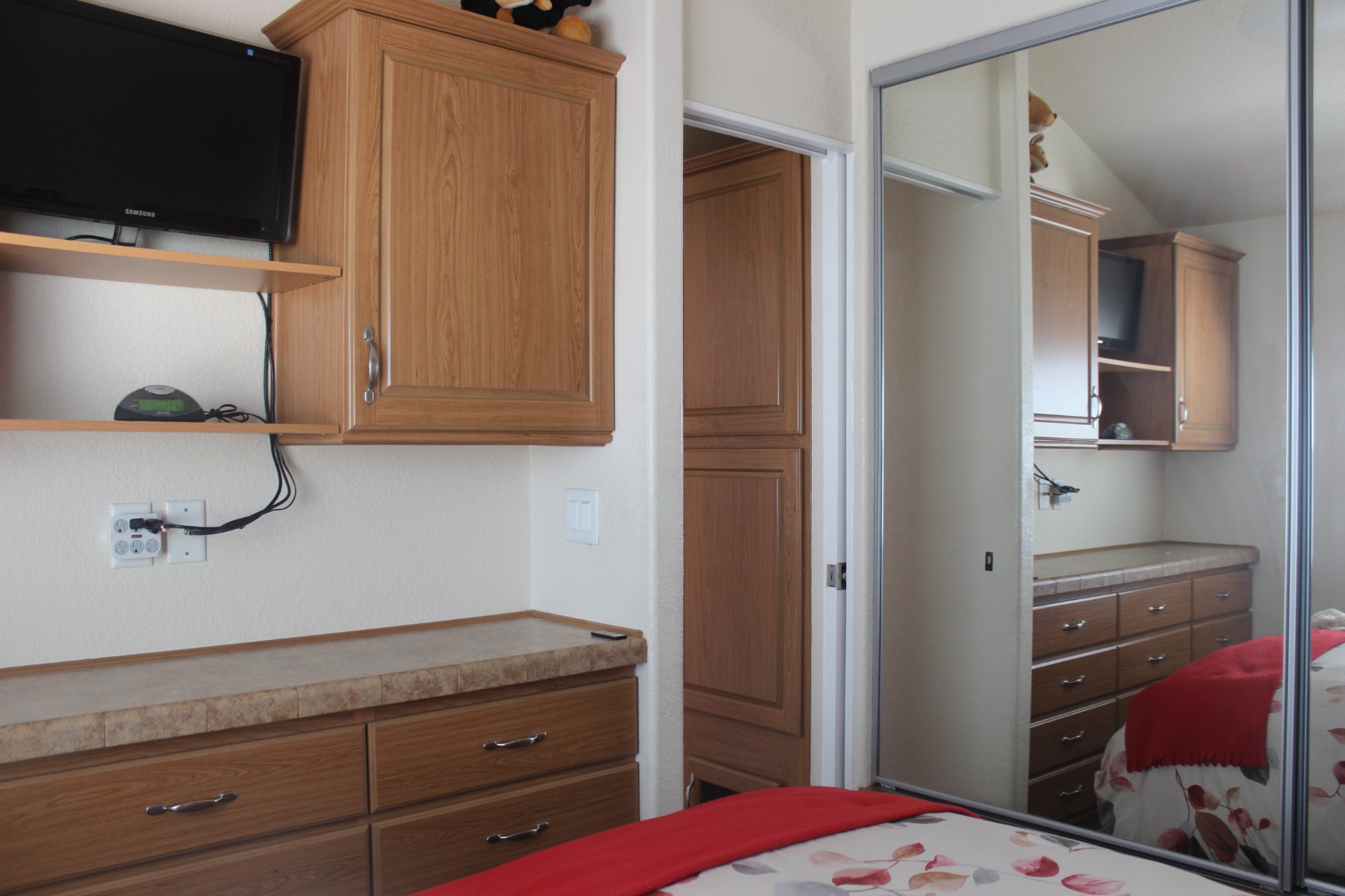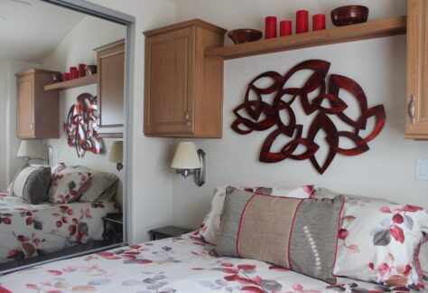 Bedroom has generous storage and queen sized air bed.