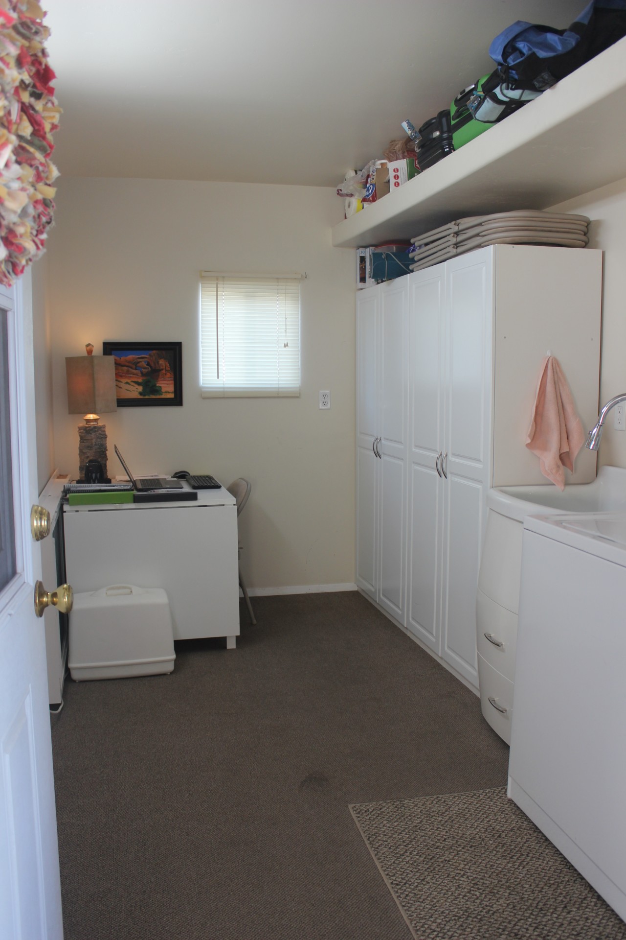 Casita includes laundry, soaker sink, enclosed and over head storage. Space is perfect for home office or sewing room.