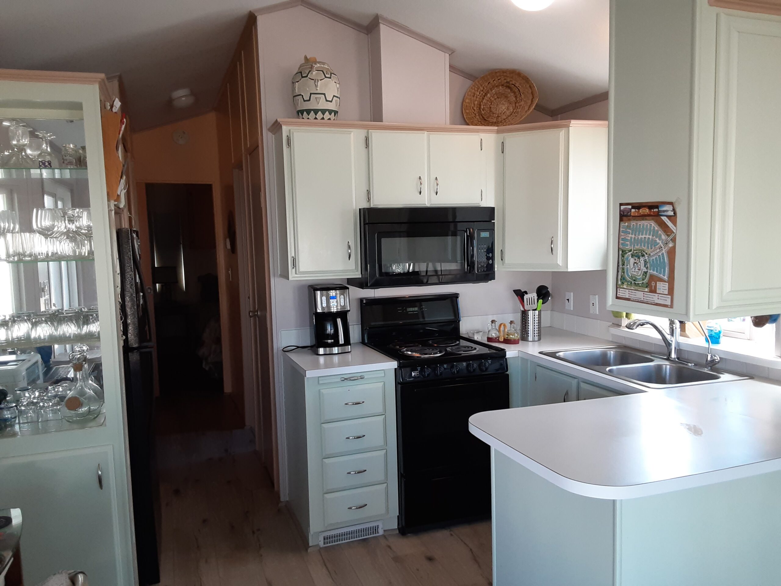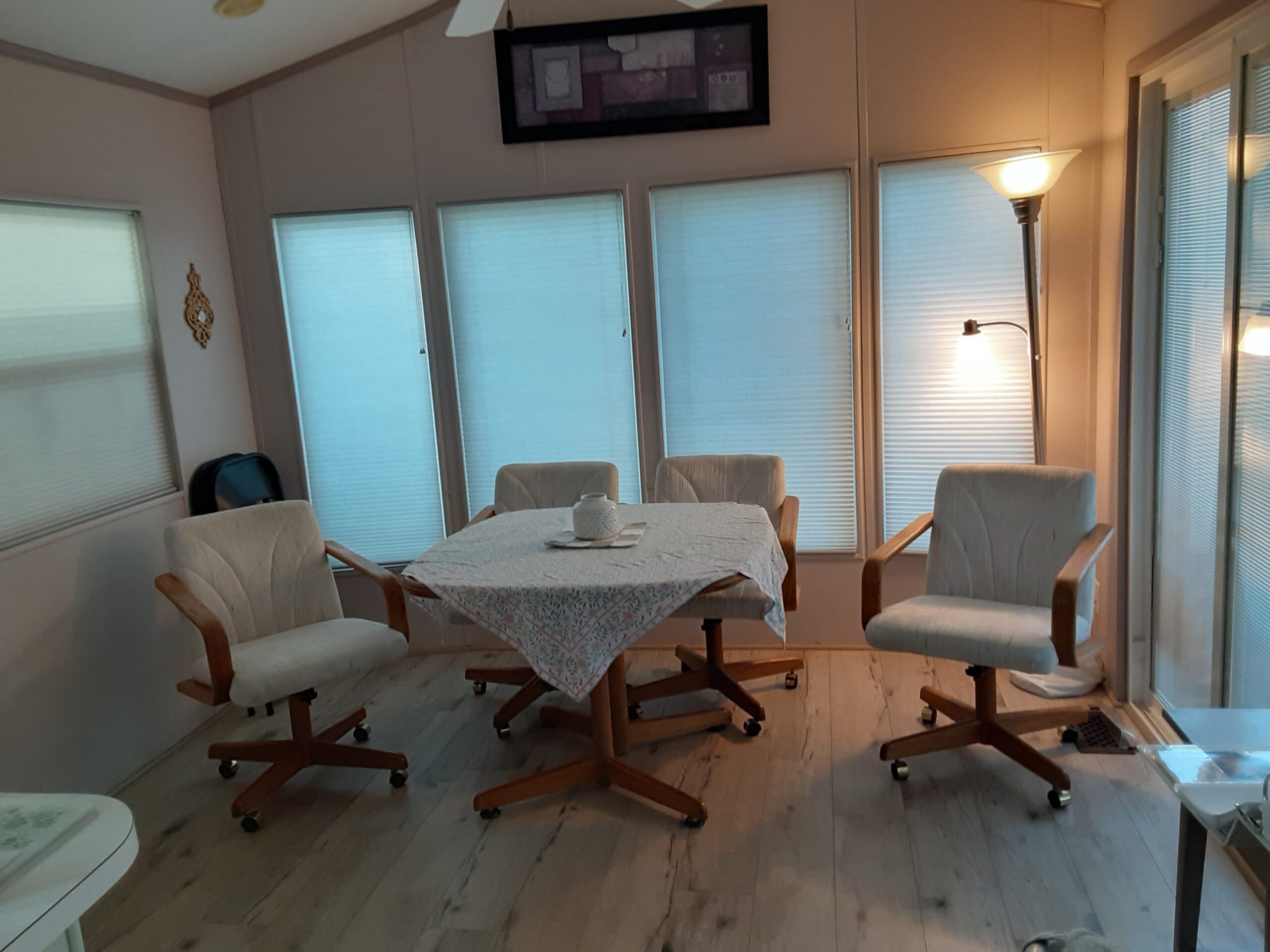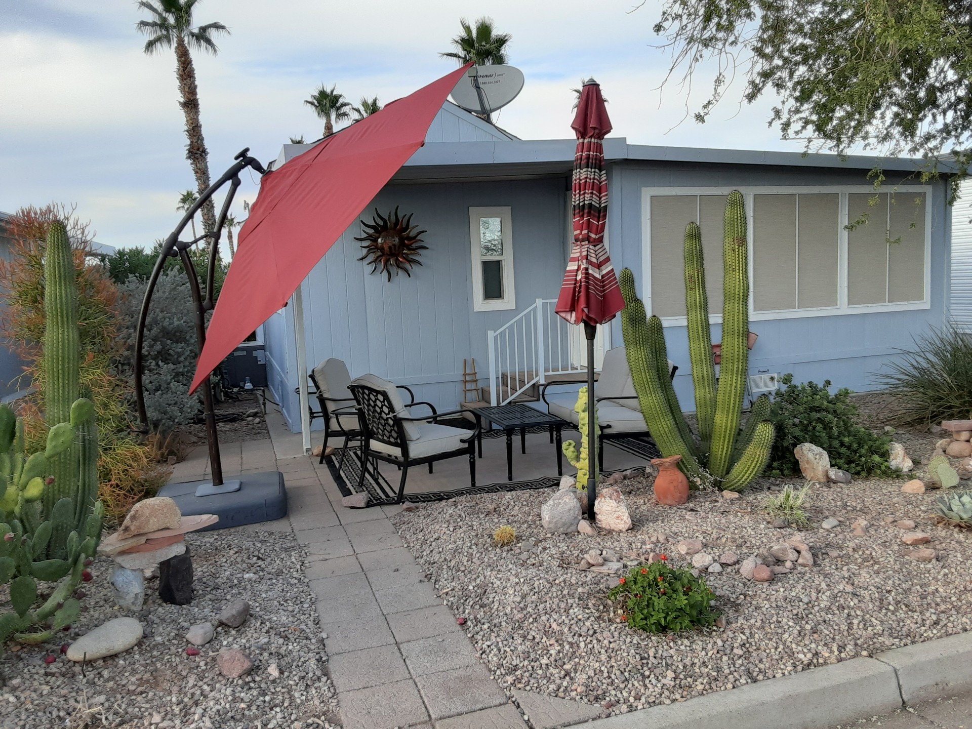 2018 New air conditioner/heating system. 2019 New siding, painted, new shingles on roof, new carport awning, new back awning, replaced windows in park model – dual pane plus new blinds. Upgraded main sliding patio door, new patio furniture, new lazy boy chairs. 2021 new refrigerator and freezer. 2022 new patio umbrella. 2024 new flooring throughout. 2025 new exterior sun screens. Lot rent paid through September 2026. Everything in home stays.